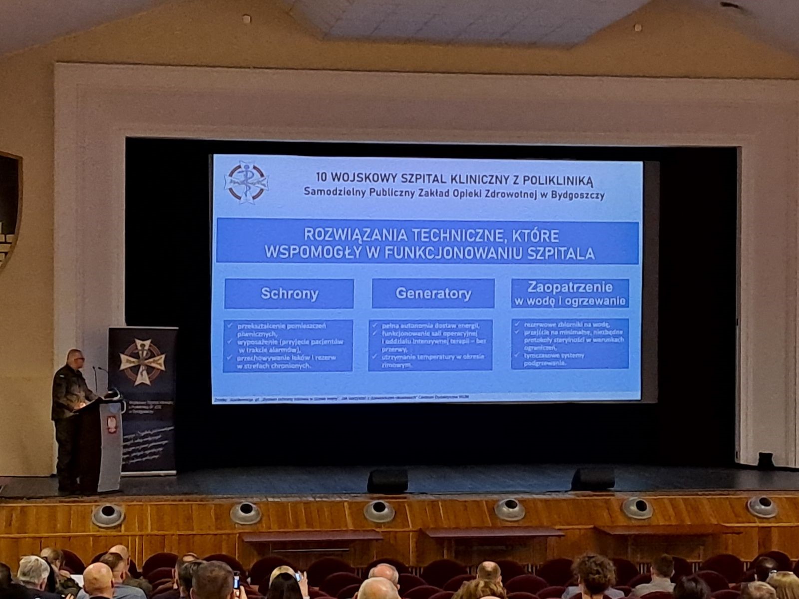 Podjęto szereg ważnych zagadnień m.in. z zakresu rozwiązań technicznych niezbędnych do zapewnienia ciągłości funkcjonowania szpitala w sytuacji masowego napływu pacjentów i zapewnienia maksymalnej autonomii. Przypomniano zasady organizacji i działania służby krwi  (krwiodawstwa i krwiolecznictwa) w sytuacjach kryzysowych. Zaprezentowano przykłady jednostek szpitalnych funkcjonujących bezpośrednio w strefie zagrożenia zbrojnego i udzielających pomocy żołnierzom oraz ofiarom cywilnym.