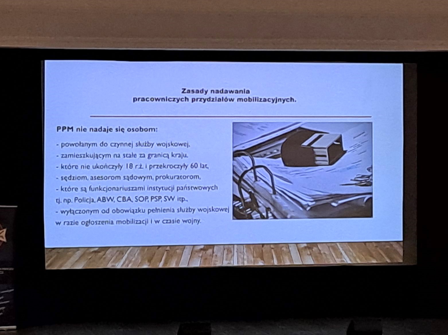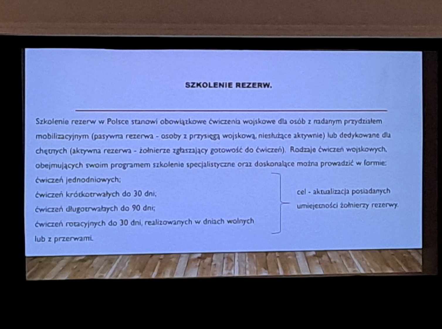 Omówiono zasady nadawania „przydziałów pracowniczych” w ramach gromadzenia zasobów osobowych mobilizacyjnych i wojennych. Przedstawiono schematy szkolenia rezerw, ze szczególnym uwzględnieniem tematyki medycyny pola walki oraz wytycznych z zakresu procedur TCCC.