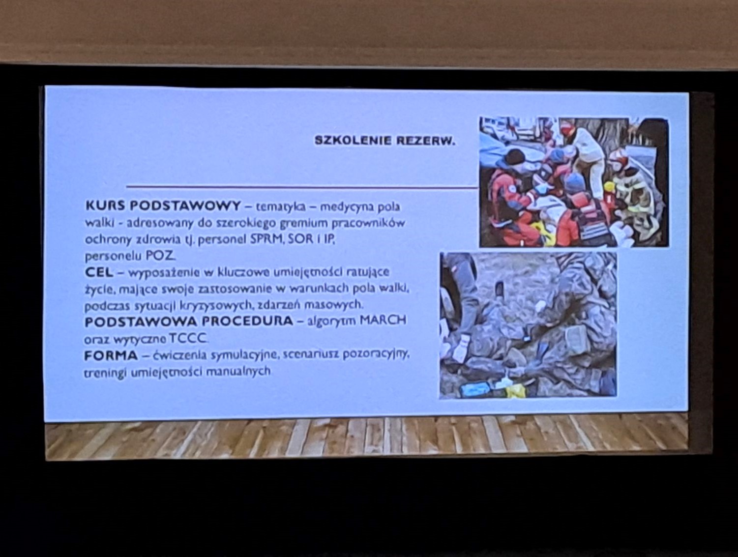 Po wystąpieniach prelegentów, uczestnicy konferencji wzięli czynny udział w praktycznym pokazie Indywidualnego Pakietu Medycznego (IPMed), stanowiącego podstawowe wyposażenie każdego żołnierza wraz z zapoznaniem się z wyposażeniem i nauką zakładania stazy taktycznej, pełniącej priorytetową rolę w pierwszym zaopatrywaniu masywnych krwawień i amputacji kończyn.