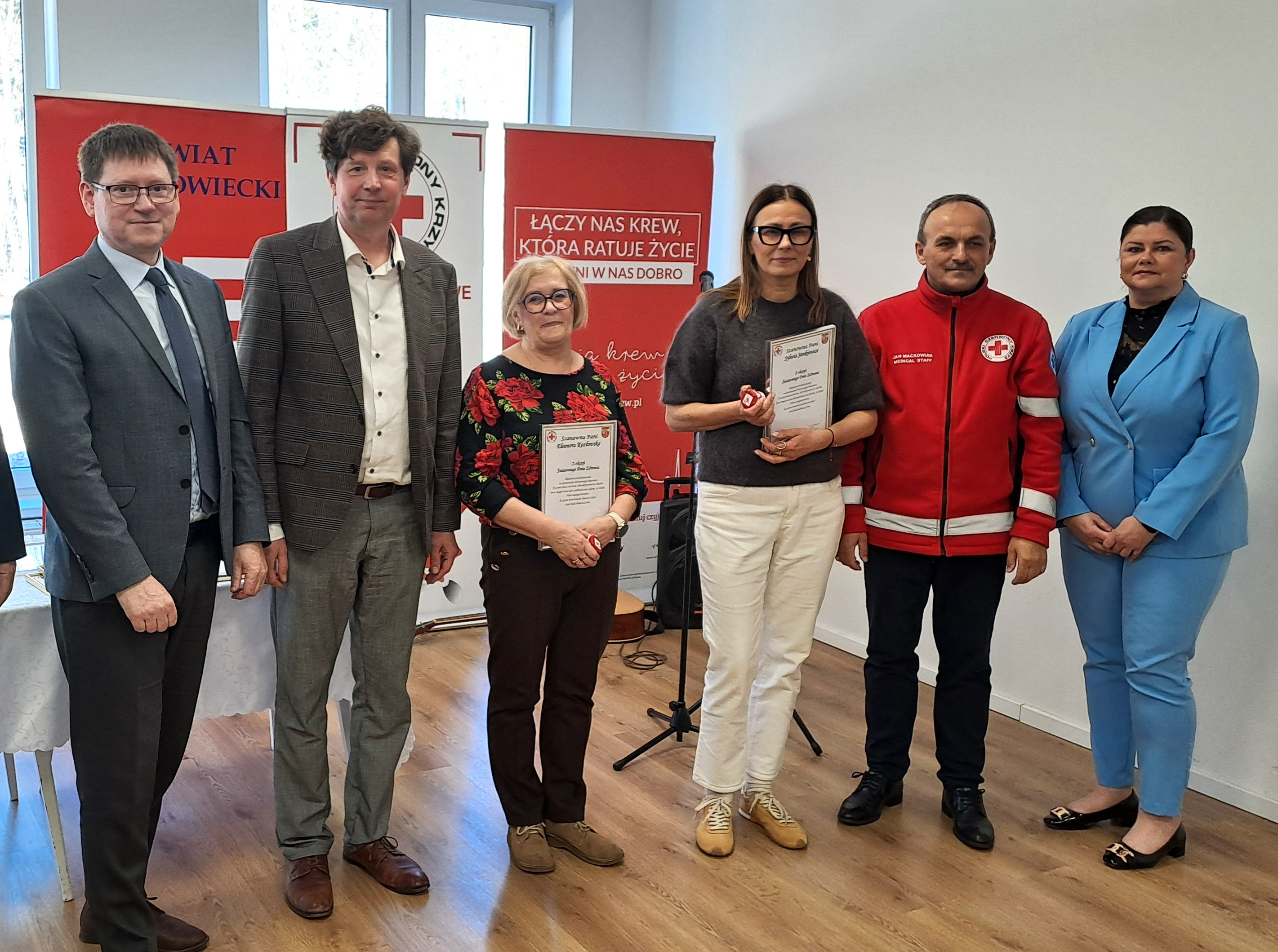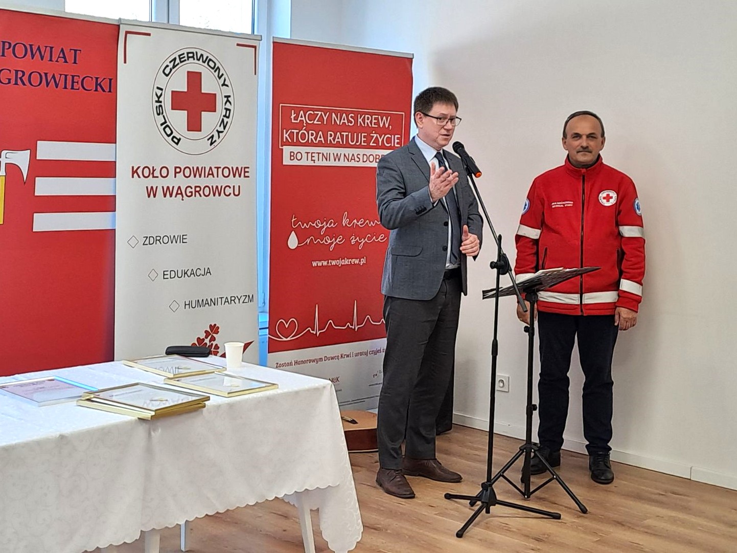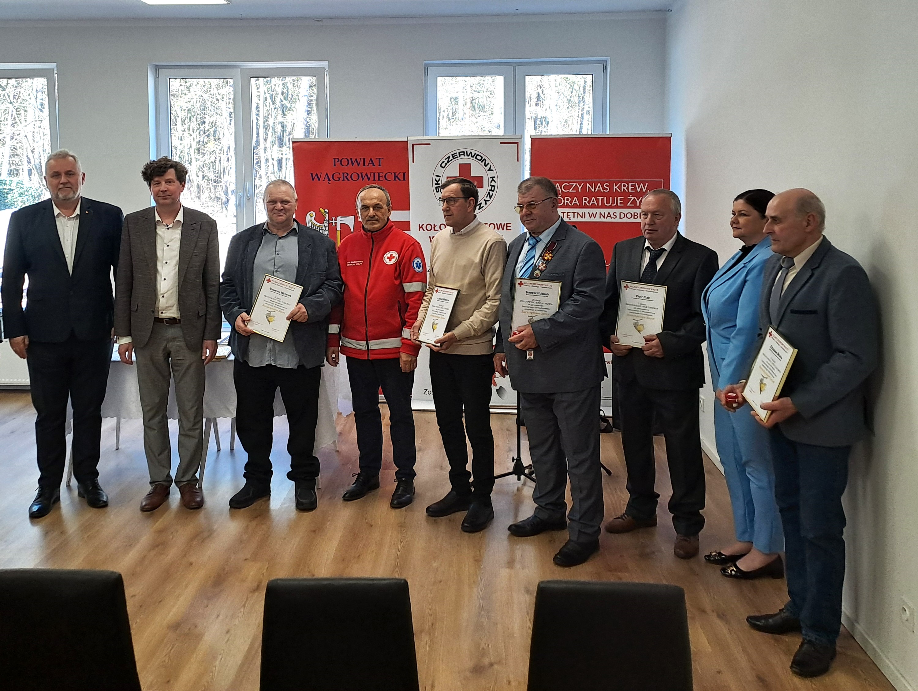 Wręczenia wyróżnień dokonali: dr Roman Klupieć – Dyrektor Regionalnego Centrum Krwiodawstwa i Krwiolecznictwa w Poznaniu oraz Radosław Kubisz – Sekretarz Powiatu Wągrowieckiego. Na koniec podziękowania za owocną współpracę z wągrowieckim oddziałem PCK otrzymali  pracownicy Punktu Krwiodawstwa w Wągrowcu: lek. Beata Plewa, lic. piel. Eleonora Kozłowska, piel. Hanna Stolarczyk, Sylwia Jankiewicz a ponadto dr Przemysław Bury – dyrektor ZOZ, Radosław Kubisz – sekretarz powiatu oraz Kinga Kluczyńska – kierownik wydziału zdrowia i spraw obywatelskich Starostwa powiatowego.