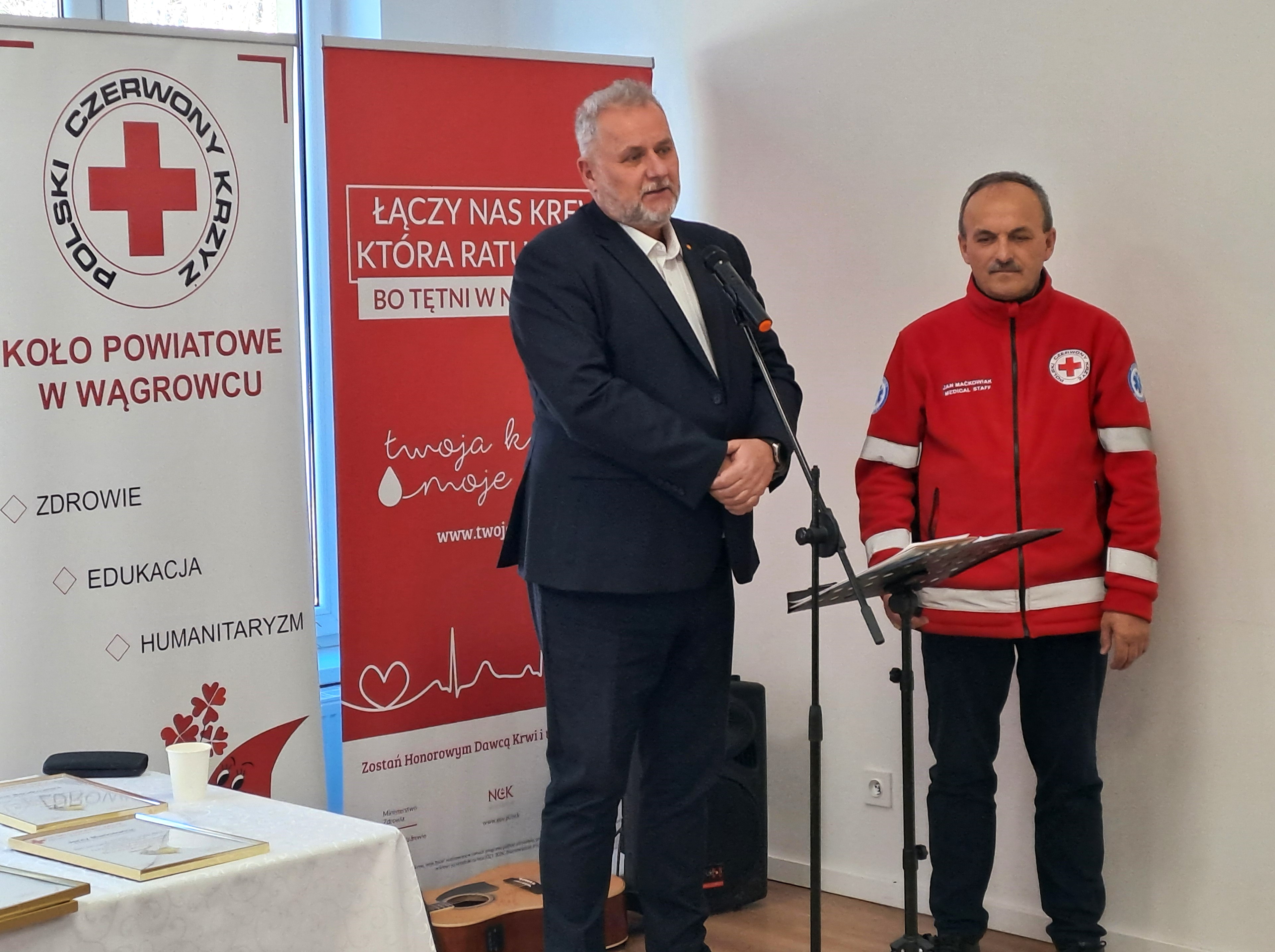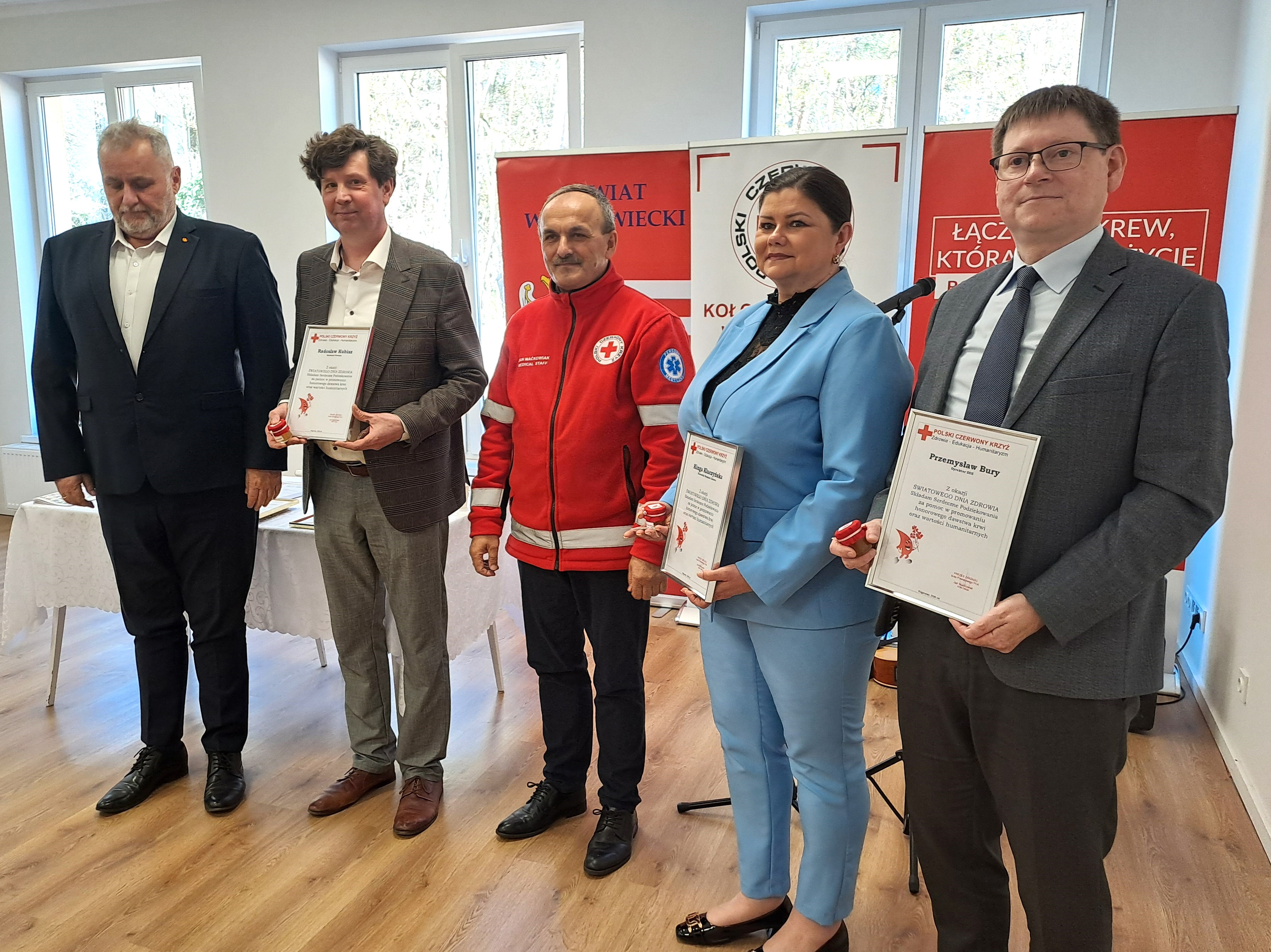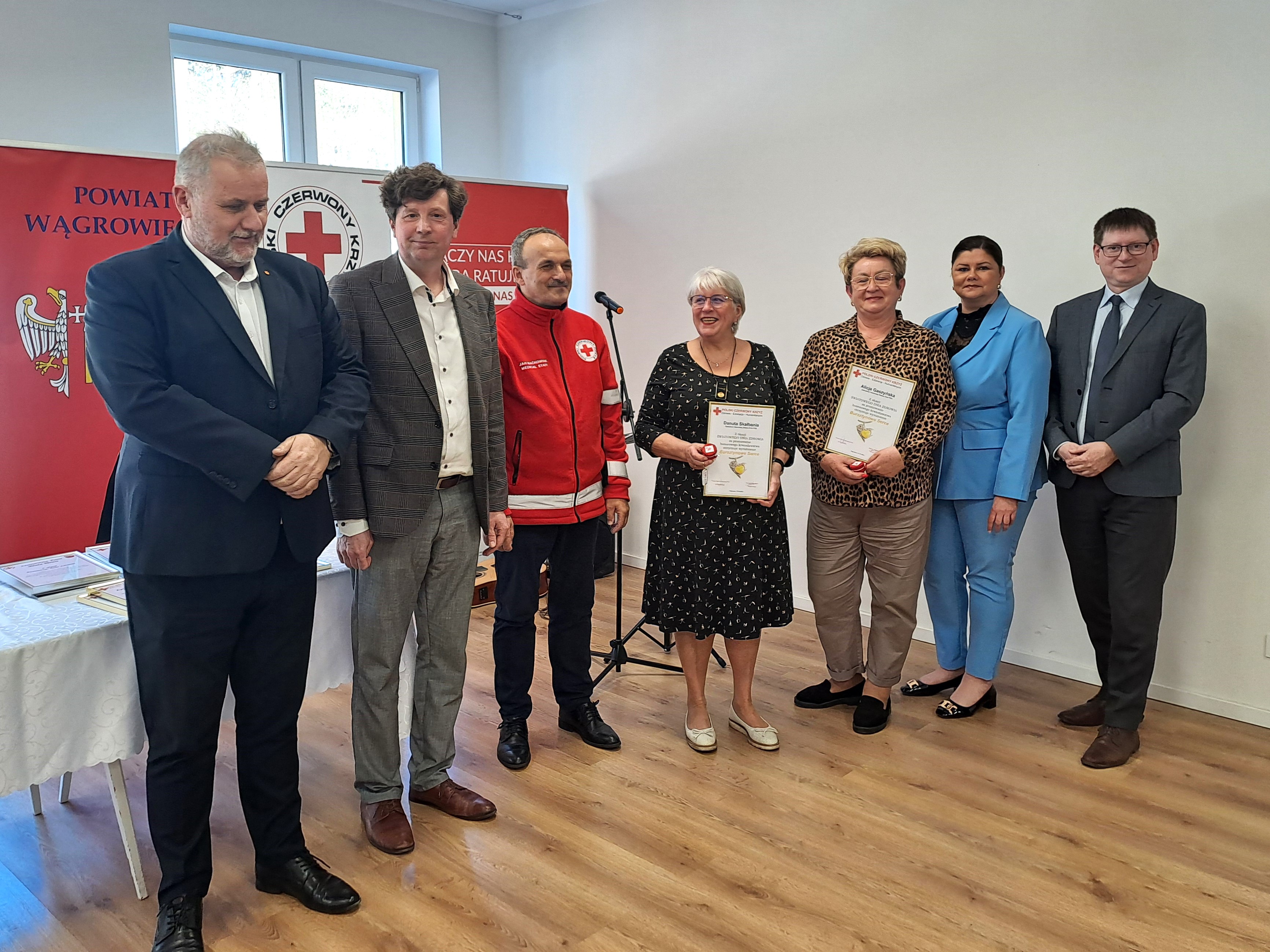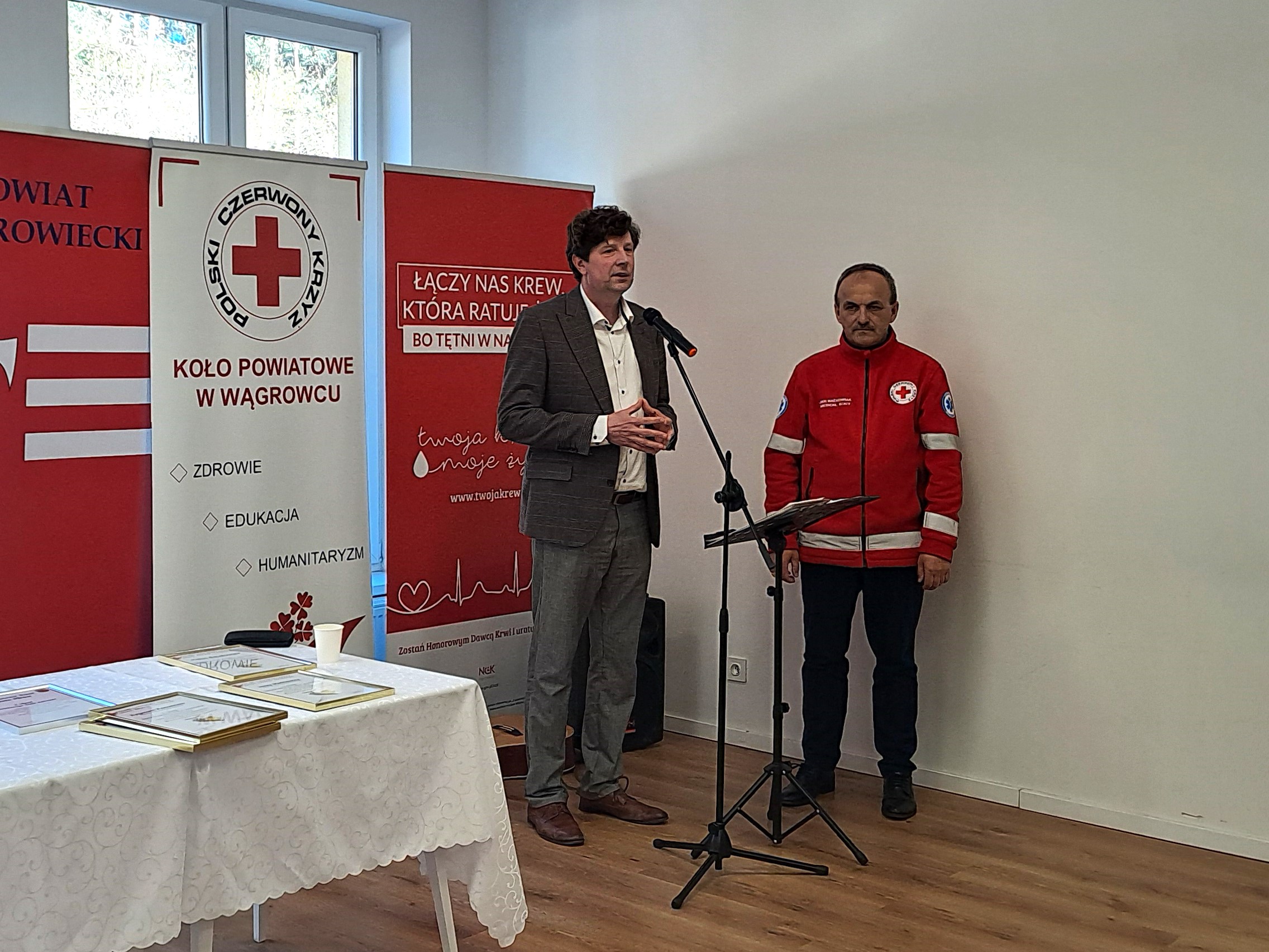 Wręczenia wyróżnień dokonali: dr Roman Klupieć – Dyrektor Regionalnego Centrum Krwiodawstwa i Krwiolecznictwa w Poznaniu oraz Radosław Kubisz – Sekretarz Powiatu Wągrowieckiego. Na koniec podziękowania za owocną współpracę z wągrowieckim oddziałem PCK otrzymali  pracownicy Punktu Krwiodawstwa w Wągrowcu: lek. Beata Plewa, lic. piel. Eleonora Kozłowska, piel. Hanna Stolarczyk, Sylwia Jankiewicz a ponadto dr Przemysław Bury – dyrektor ZOZ, Radosław Kubisz – sekretarz powiatu oraz Kinga Kluczyńska – kierownik wydziału zdrowia i spraw obywatelskich Starostwa powiatowego.
